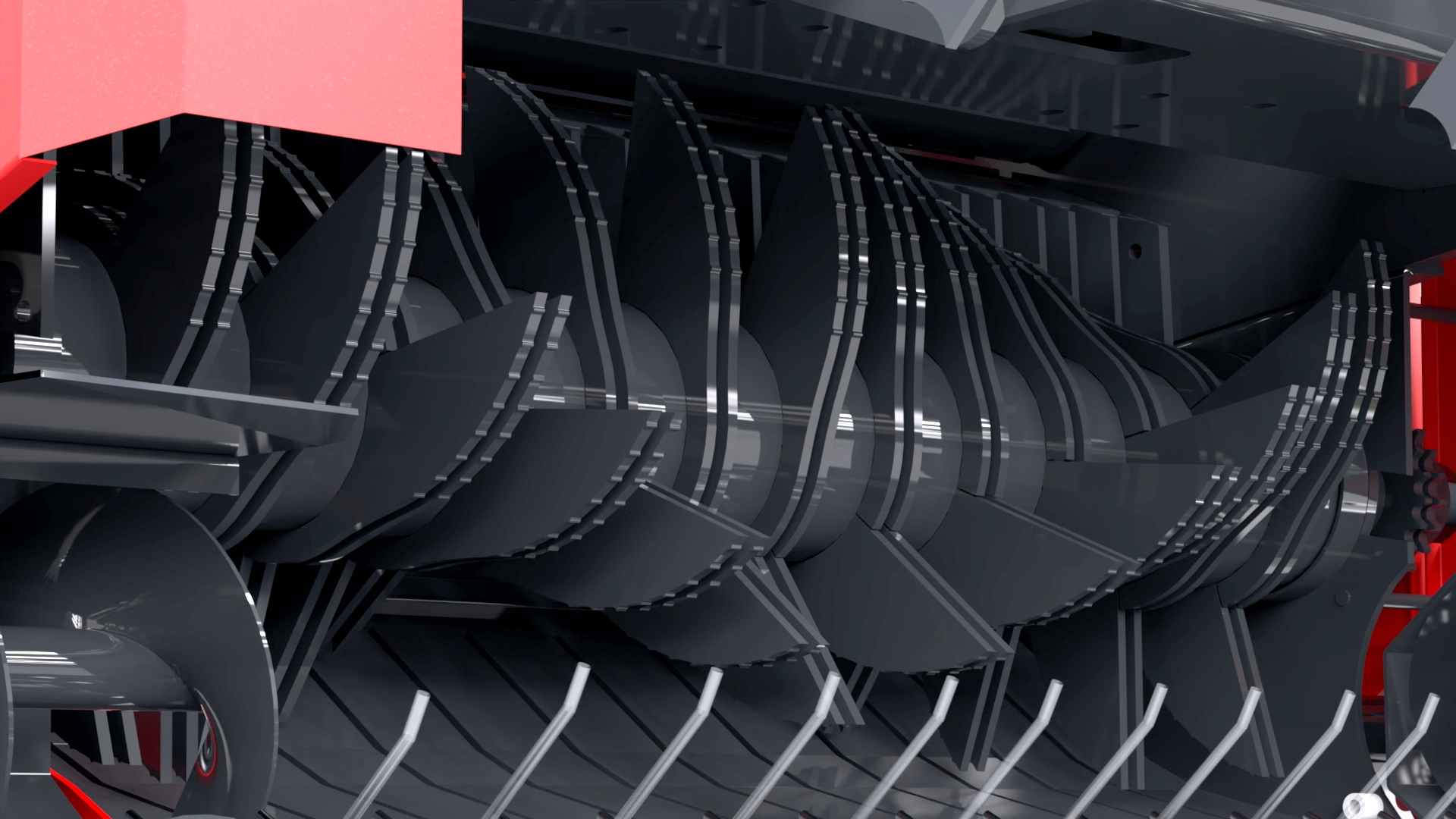 Boczne ślimaki zapewniają skuteczny transport materiału do rotora.
